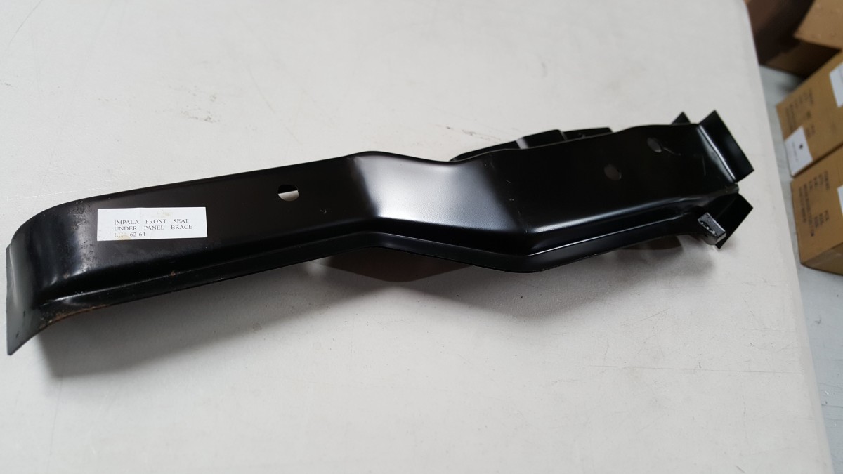Floor seat brace to suit Impala 1962-1964. Both left hand and right hand side available. Price is for 1 side.