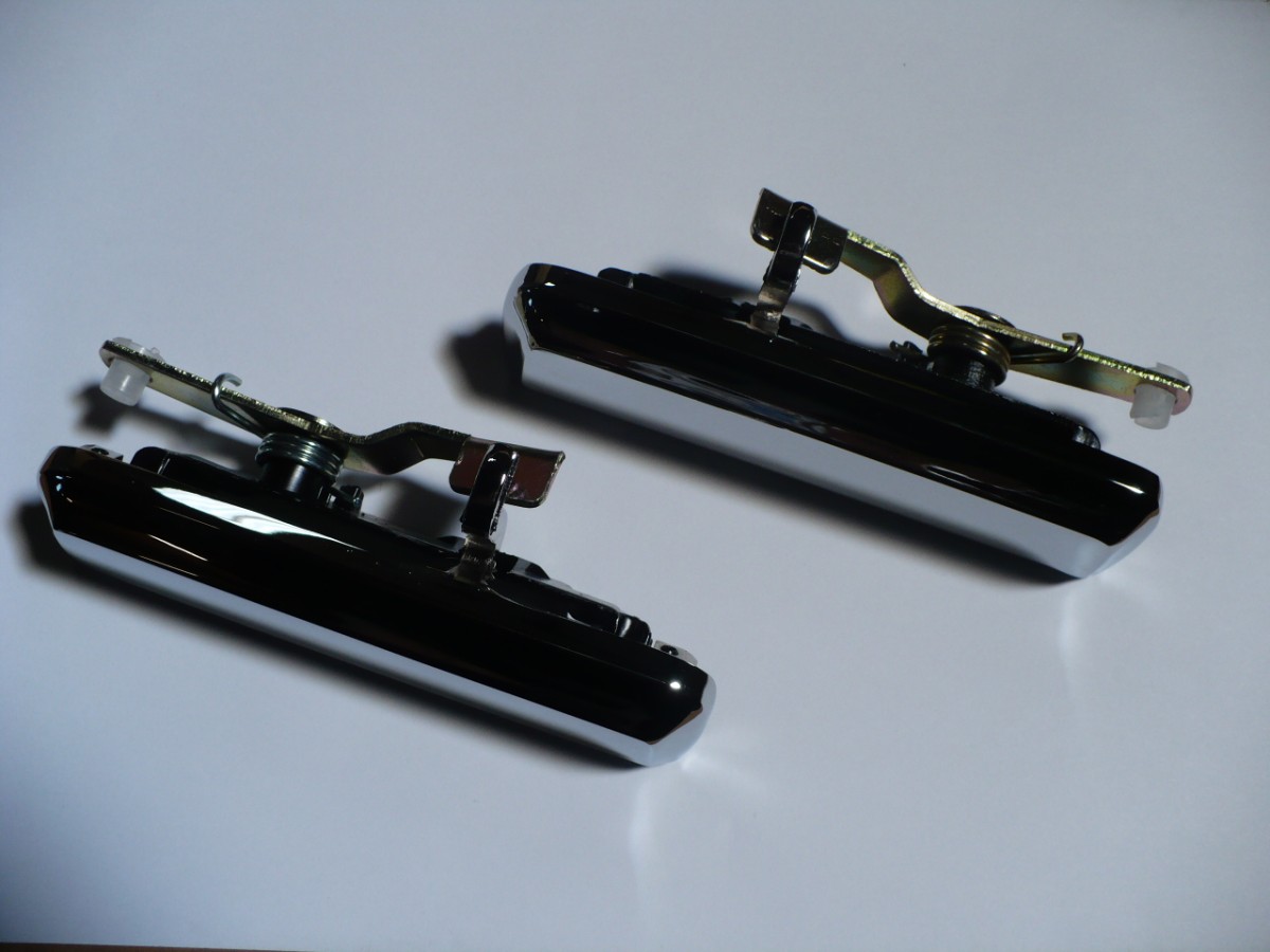 Pair of chrome front outer door handles to suit XD-XE-XF Falcon, and TE-TF Cortina.