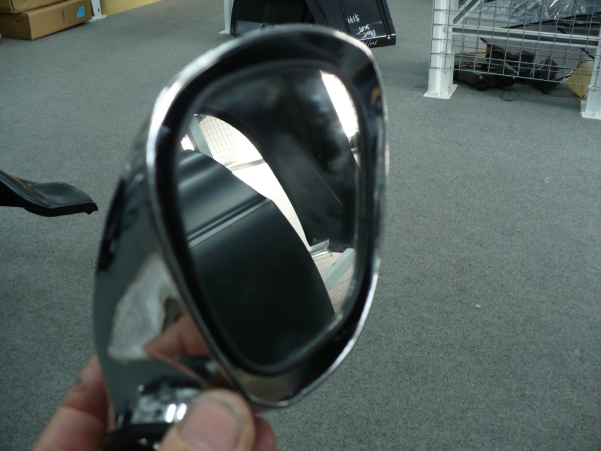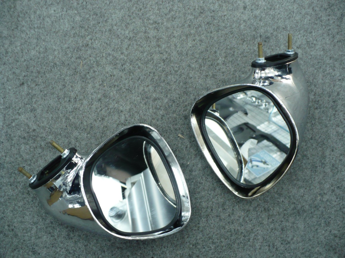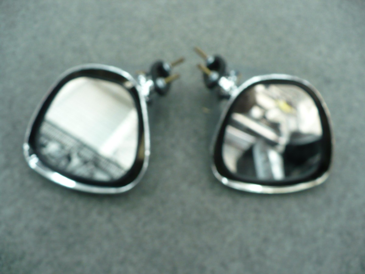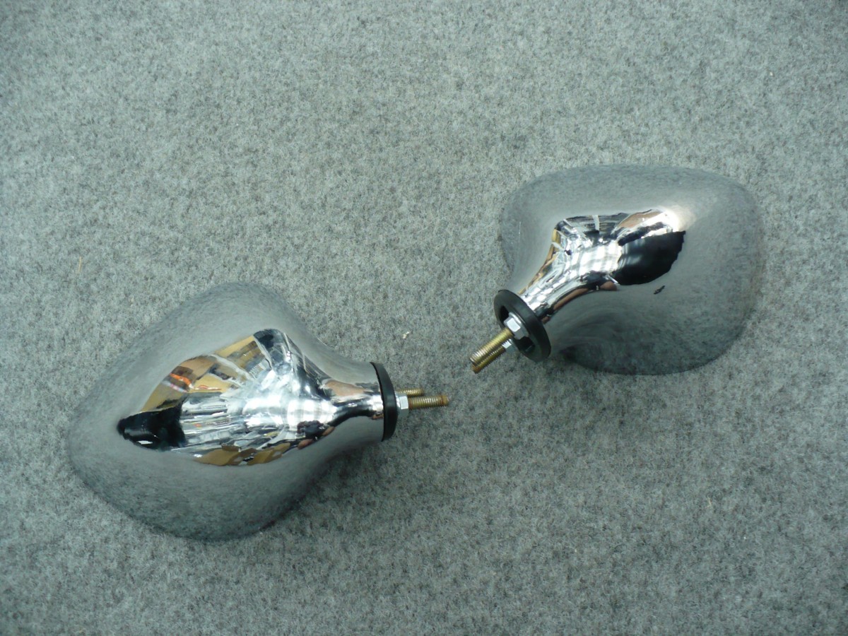 Pair of chrome plastic tear drop mirrors for XY GT. Comes with bolts and rubber gaskets and fits many old models.