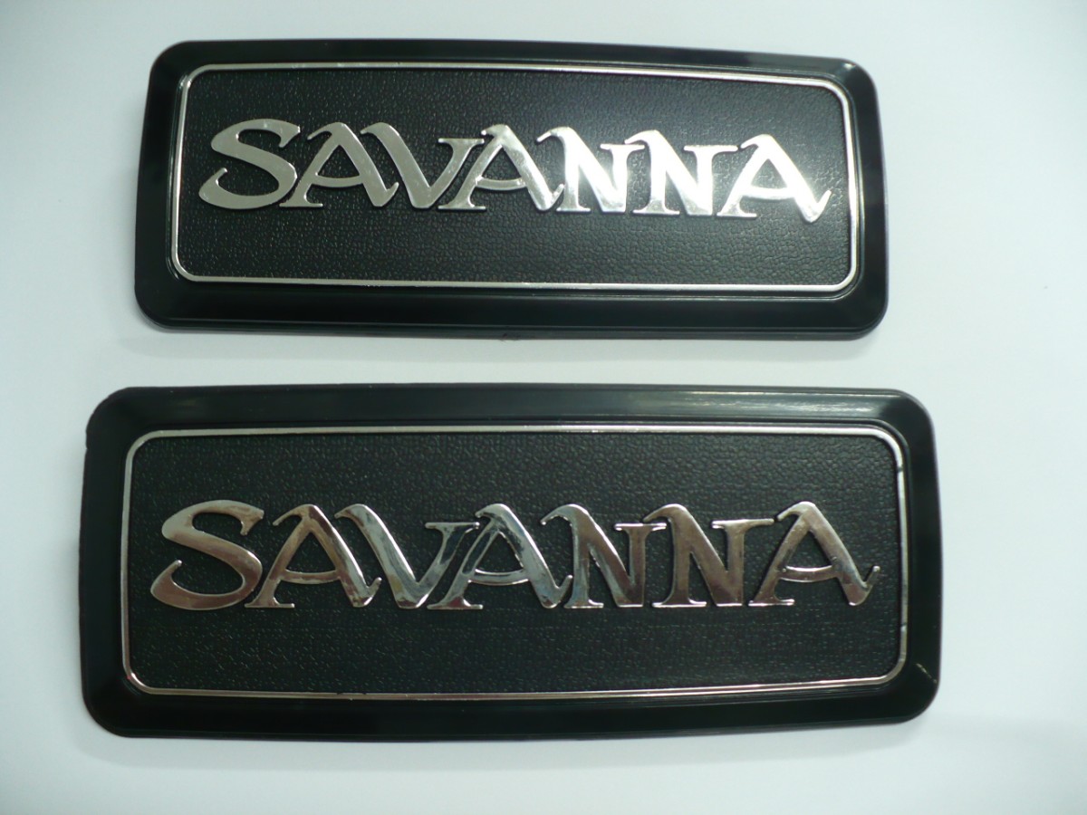 Pair of rear quarter badges to suit Mazda RX3 Savanna.